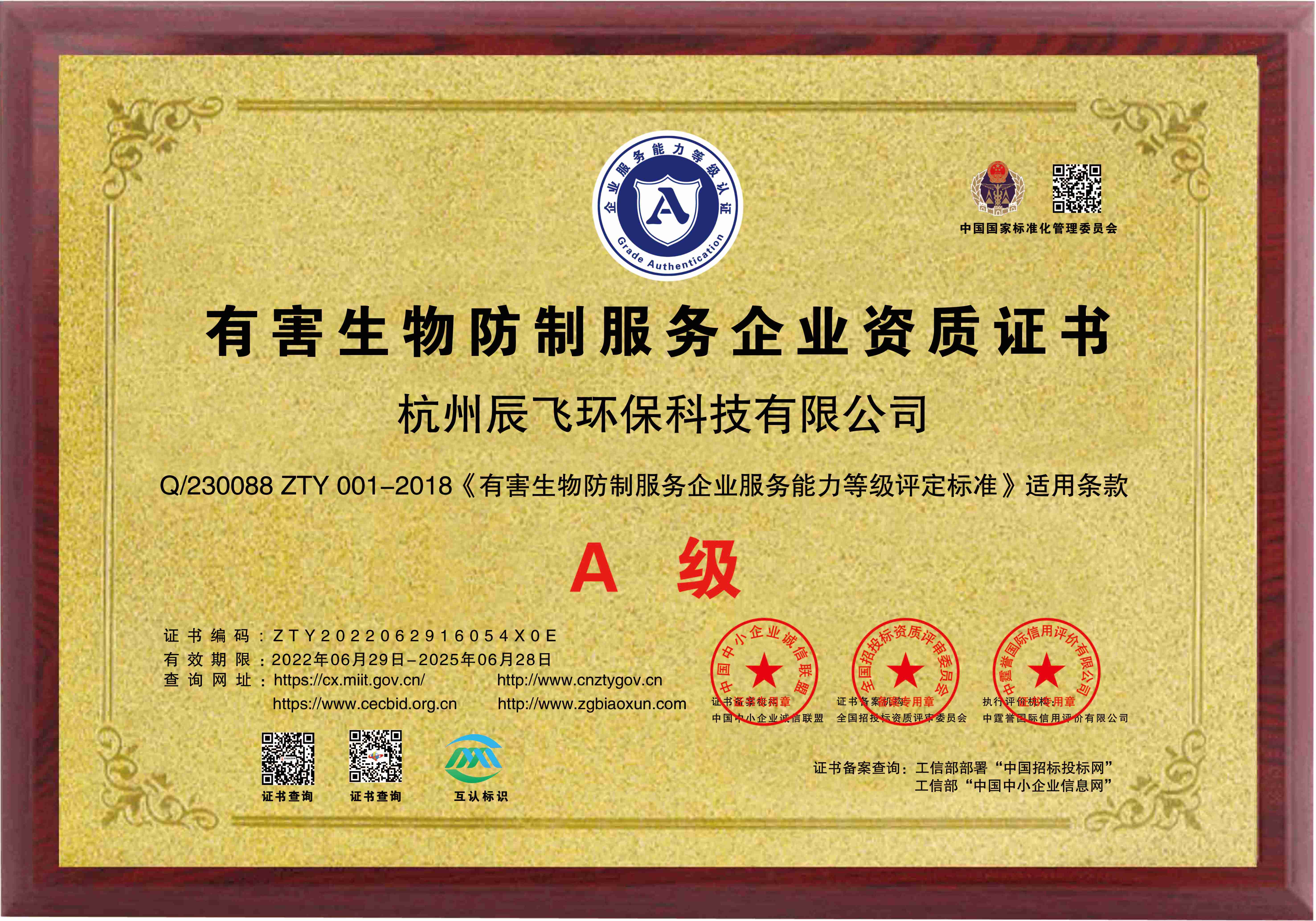 • 有害生物防制服務(wù)企業(yè)A級(jí)